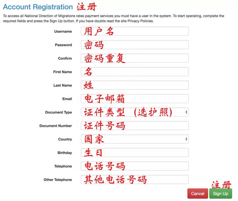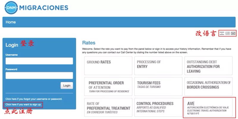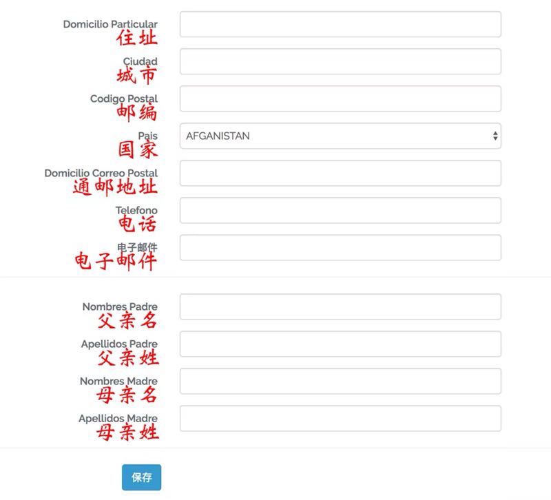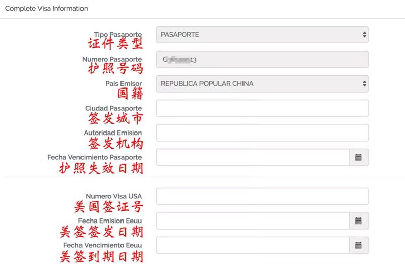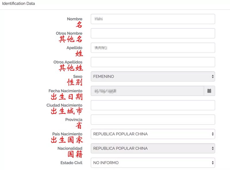 “点击进入完成申请手续”开始提交申请(虽然左上角有中文和西语的语言选项,但其实中文并没怎么翻译,还是直接看我们的攻略吧!)