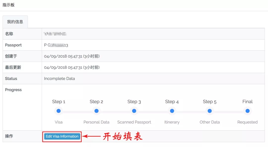 点击最下面Edit Visa Information来开始填表。