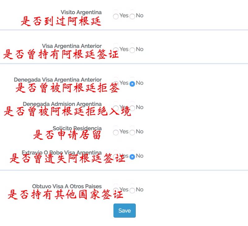 如果选择没有到过阿根廷或者未曾持有过阿根廷签证,还是会让你输入上次访问阿根廷的日期以及上次阿根廷签证的签发日期…随便填个日期就好,不影响。