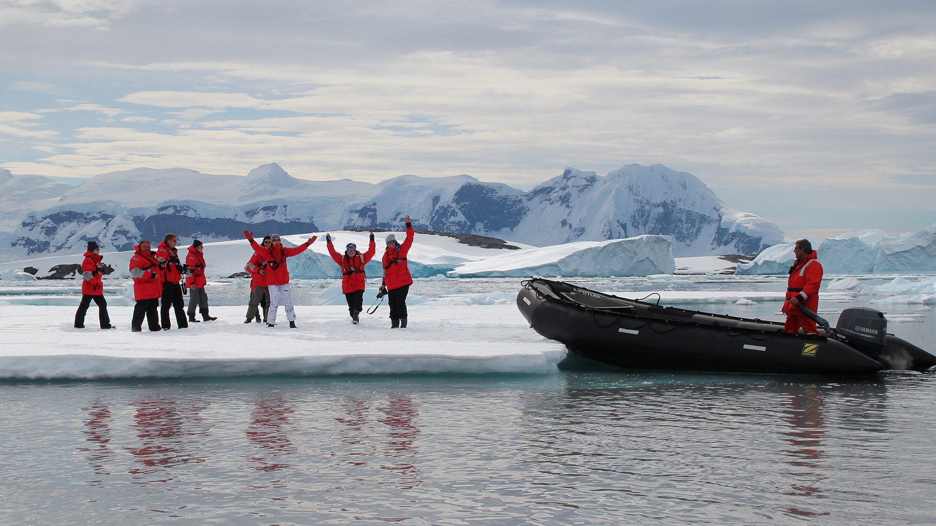 在南极登陆有规定:每个登陆点每次只允许一艘船登陆,单次登陆人数不得超过100人。