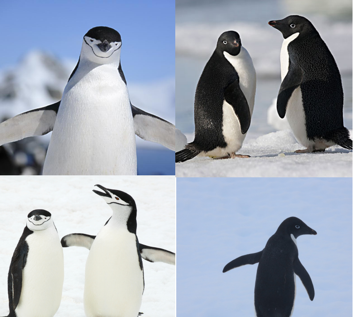帝企鹅和王企鹅很相像,难以分辨。乍眼一看,它俩一模一样,都身披黑白分明的大礼服,喙部赤橙色,脖子底下有一片橙黄色。